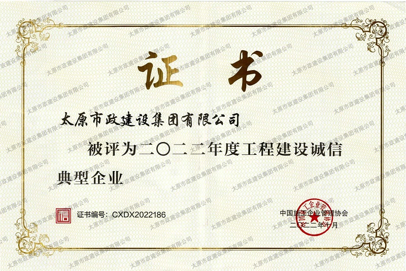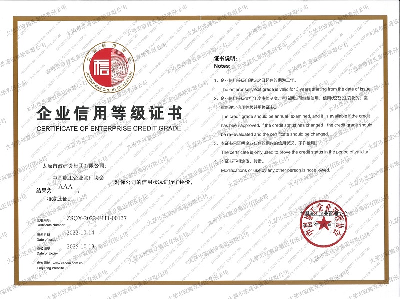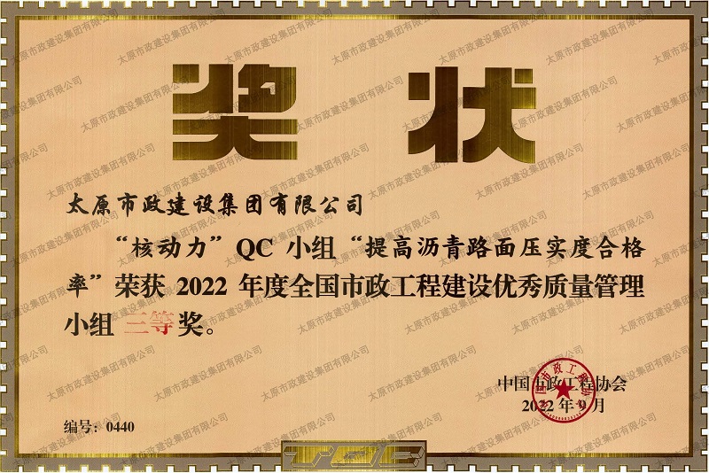 資質證書 營業(yè)執(zhí)照 2022年度市政工程最高質量水平評價_H5-1路道路及配套工程(二標段) 2022年度工程建設誠信典型企業(yè) 中國施工企業(yè)管理協會_AAA級企業(yè)信用等級 2022年度全國市政工程建設優(yōu)秀質量管理小組三等獎_''核動力QC小組”提高瀝青路面壓實度合格率”